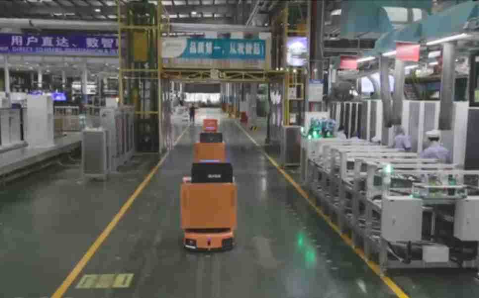 为车载冰箱物流配送打造的智能解决方案,,包含产中物流通过潜伏举升AMR搬运至线边,,产后成品物流智能仓储,,流程包含产中物流智能齐套入库,,,,线边安灯叫料AMR智能配送至线边,,,成品入库、、、、出库,,,通过无人堆高车机器人,,,,智能仓储管理替代人工作业管理,,实现更高存储、、、更高效率、、更具柔性化的解决方案。。